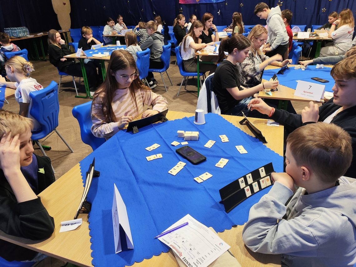 Laureatkami zostały: 1 miejsce — Alicja Piotrowska z kl. 6a, 2 miejsce — Nadia Traut z kl. 6a, 3 miejsce — Patrycja Pawłowska z kl. 6c. Alicja i Nadia otrzymały awans na Wojewódzkie Mistrzostwa Szkół w Rummikub, które odbędą się 29 maja w Kutnie.